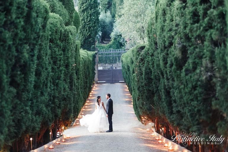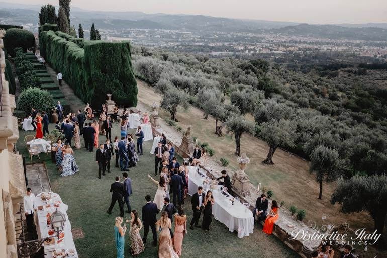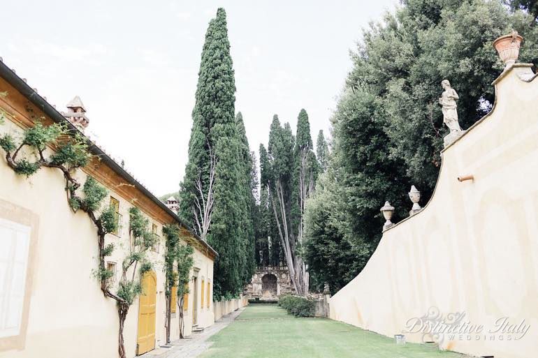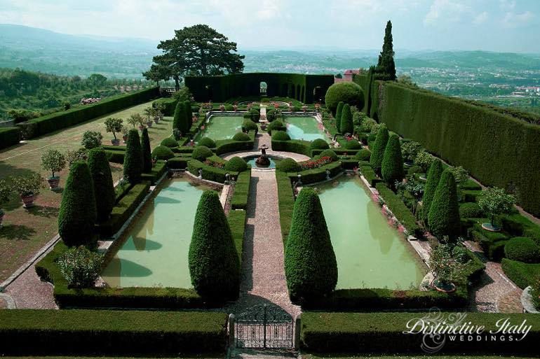 THE PLACE | Florence’s premier villa – second to none. The historic villa, built in the early 1600s is world famous for its magnificent gardens. Overlooking the hills of Florence, only 15 minutes by car from the city’s center Villa Gamberaia enjoys an amazing position overlooking countryside and the Arno river. The gardens are open to the public for visits and the superb layout with its grottoes, Italian gardens, architecture and fountains has been drawing visitors for centuries. Weddings: The spaces available for the event are: