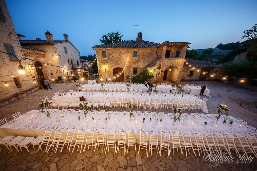 THE PLACE | Weddings: The beautifully restored hamlet offers a variety of reception halls and open areas, from which you can choose the perfect setting for your unforgettable day: the garden, the square, the court and the different reception rooms, create a variety of areas for your wedding celebration. The venue offers 3 reception rooms (capacity with tables and chairs max 180+150+50) and a large external spaces (square, courtyard, garden, BBQ area and pool area) for over 350 people. Accommodation: Borgo San Martino also offers 10 charming, rustic, fully refurbished apartments for maximum 48 guests. The exclusive rental fee includes the exclusive use of all reception areas for the wedding, indoor/outdoor spaces and the accommodation for 48 guests. For extra guests there is the possibility to accommodate them in nearby properties. |