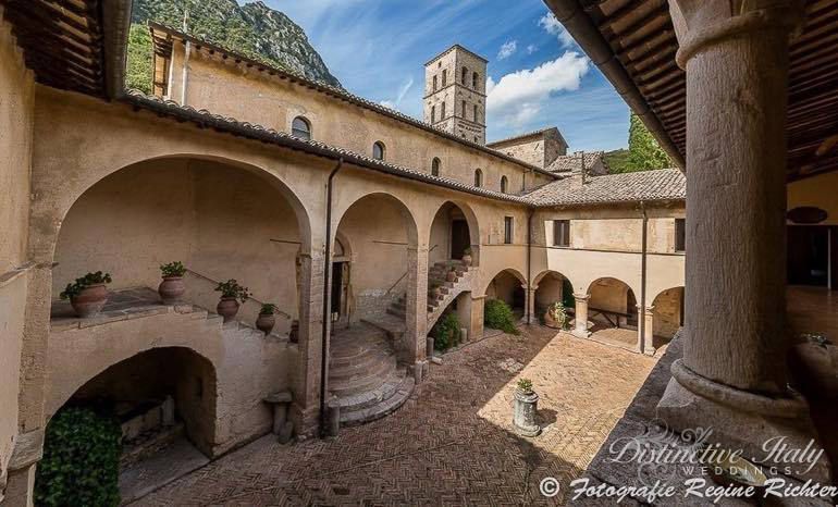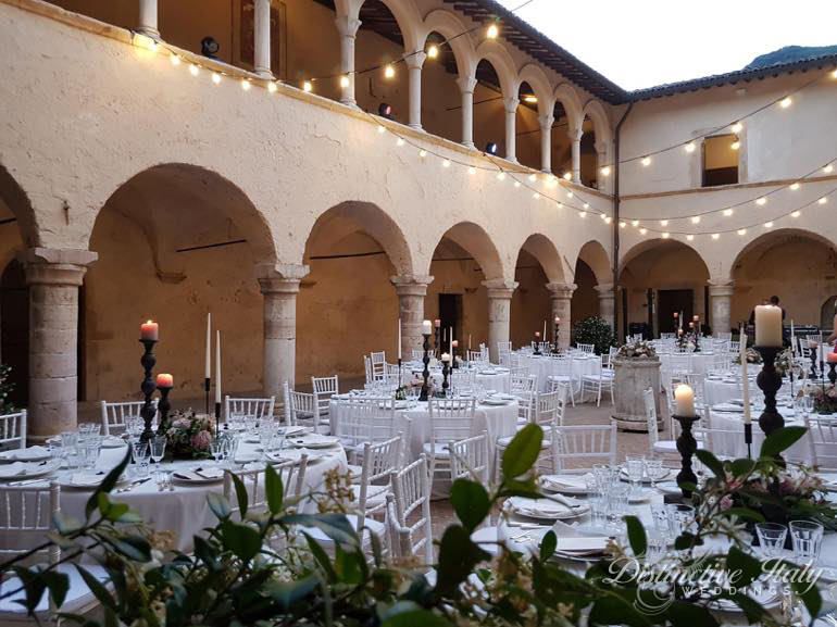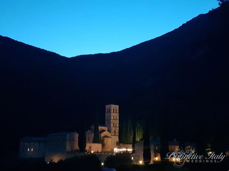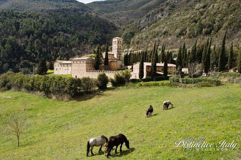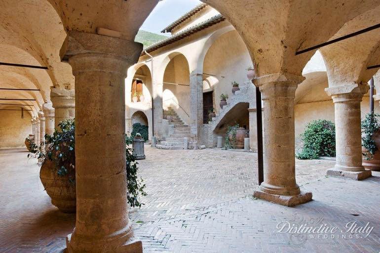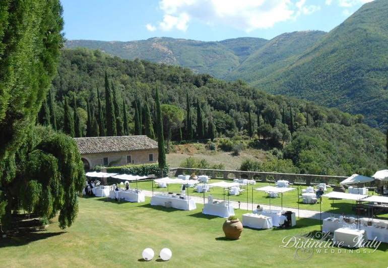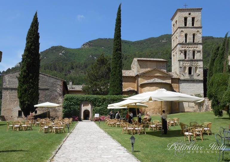 This Magical Ancient Abbey is a one of a kind setting; you will be surrounded by history and beauty. A Romanesque cloister, unique buildings and architecture along with panoramic gardens with a splendid view over the green valleys of Umbria will be yours for the duration of your celebration.